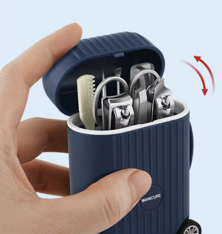 Keep your nails perfectly groomed wherever you go with this 8-Piece Stainless Steel Manicure & Pedicure Set. Housed in a stylish mini luggage-style suitcase, this compact kit combines practicality with a fun, travel-ready design.